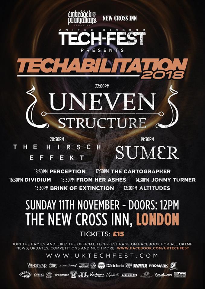 Hitting the stage will be Uneven Structure, The Hirsch Effekt, Sumer, Perception, The Cartographer, Dividium, From Her Ashes, Jonny Turner, Brink of Extinction and Altitudes! The day kicks off from 12pm and will cost you a measly £15!