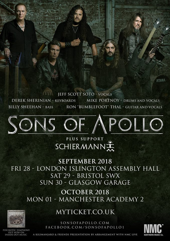 Prog guitar virtuoso SCHIERMANN has announced that he’ll be supporting Sons of Apollo on their upcoming run through the UK, see below for dates.